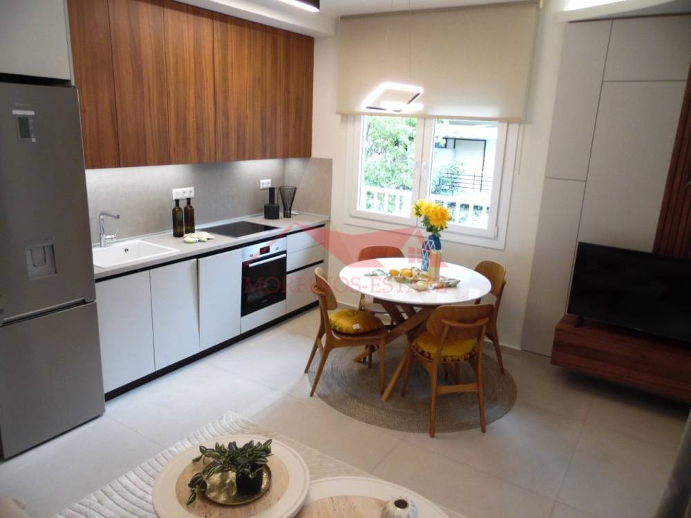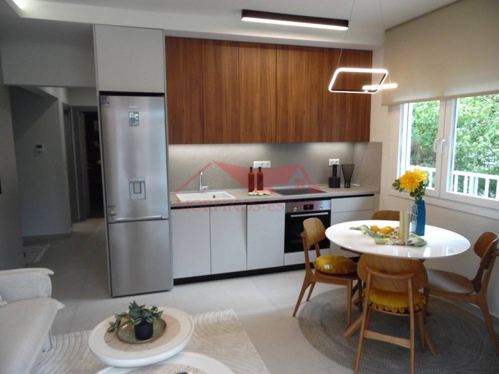 Το διαμέρισμα θα παραδοθεί πλήρως επιπλωμένο, με ηλεκτρικές συσκευές (κρεβάτι, ντουλάπα, τραπέζι κουζίνας, καναπές, πλυντήριο ρούχων, πλυντήριο πιάτων, φούρνος εντοιχισμένος, ψυγείο), βαμμένο και διαθέτει θέρμανση ατομικού φυσικού αερίου, κουφώματα αλουμινίου με διπλά τζάμια, πόρτα ασφαλείας, κλιματισμό, ντουλάπα.