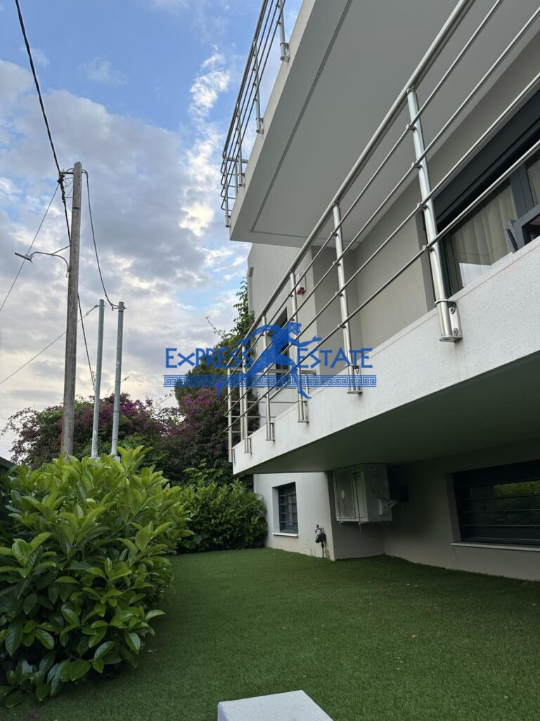 Η εξωτερική περιοχή περιλαμβάνει κήπο με γκαζόν και δέντρα, προσφέροντας μία ήσυχη όαση μέσα στην πολυάσχολο ζωή της πόλης. Ένα πρόσθετο στοιχείο είναι η ευκολία στο παρκάρισμα, με μία θέση παρκινγκ σε ανοιχτό χώρο. Το μοναδικό χαρακτηριστικό της κατοικίας είναι η πανοραμική θέα προς τη θάλασσα και το πράσινο, η οποία είναι ανεμπόδιστη,