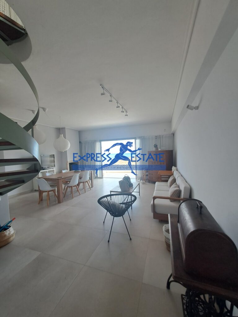 Στο πρώτο επίπεδο υπάρχει ενιαία σαλοτραπεζαρία με τζάκι και ξεχωριστή κουζίνα με ηλεκτρικές συσκευές, ευρύχωρο μπαλκόνι με απεριόριστη θέα στην θάλασσα, 1 μπάνιο, εσωτερική σκάλα που οδηγεί στο 2ο επίπεδο. Το δεύτερο επίπεδο (ρετιρέ) αποτελείται από μικρό καθιστικό , 2 υπνοδωμάτια με ντουλάπες και 1 μπάνιο. ΧΩΡΙΣ ΚΟΙΝΟΧΡΗΣΤΑ