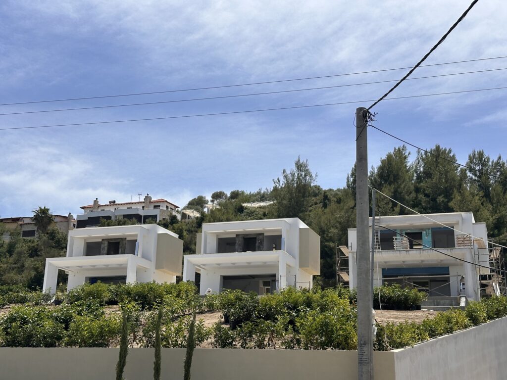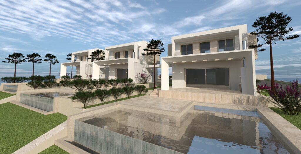 Λεπτομέρειες: σε συγκρότημα κατοικιών προς πώληση 3 νεόδμητες πολυτελείς βίλες, με αποκλειστική πισίνα και υπέροχη θέα στη θάλασσα στο χωριό Πευκοχώρι, στην Κασσάνδρα Χαλκιδικής. Οι βίλες αποτελούνται από μεγάλο σαλόνι και τραπεζαρία, κουζίνα και τουαλέτα στο ισόγειο. Πρώτος όροφος με δύο δίκλινα υπνοδωμάτια που όλα οδηγούν σε μια μεγάλη βεράντα και ένα μπάνιο. Υπόγειο με δύο δίκλινα υπνοδωμάτια, ένα μπάνιο και μια αποθήκη. Υποδομή για κεντρική θέρμανση που υποστηρίζεται από αντλία θέρμανσης inverter, κλιματισμός, ηλιακός θερμοσίφωνας, εξοπλισμός ιταλικής κουζίνας, μπάρμπεκιου, πάρκινγκ, δορυφορική τηλεόραση και συναγερμός ασφαλείας και υποδομή για EV Charge, συμπεριλαμβάνονται στην τιμή πώλησης. Πωλούνται χωριστά και διατίθεται και με οικόπεδο 801τμ στις 850.000€.