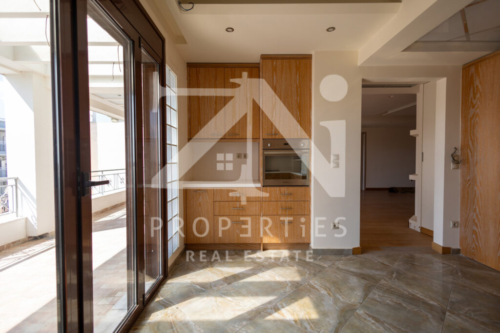 Η κουζίνα αποτελεί ξεχωριστό σημείο του ακινήτου, με ιδιαίτερη αισθητική και χαρακτήρα, προσφέροντας πληθώρα αποθηκευτικών χώρων και εξοπλισμό υψηλής ποιότητας, ιδανική για καθημερινή χρήση αλλά και φιλοξενία.