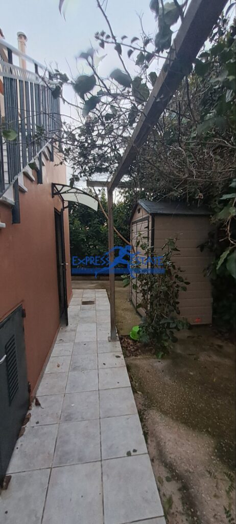 Στον εξωτερικό χώρο υπάρχει ιδιωτικός κήπος με δέντρα, χώρος μπάρμπεκιου (BBQ) και δύο θέσεις στάθμευσης σε ανοιχτό χώρο. Υπάρχει επίσης, εσωτερική αλλά και εξωτερική αποθήκη για επιπλέον αποθηκευτικούς χώρους. Η κατοικία είναι προσόψεως, φωτεινή, ευάερη και ευήλια, σε ήσυχη γειτονιά, με ανεμπόδιστη, πανοραμική θέα προς τη θάλασσα, το βουνό και το πράσινο.
