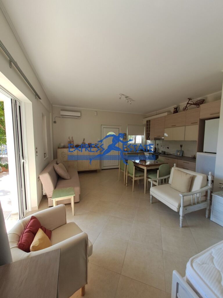 Η κατοικία διαθέτει ένα ευρύχωρο καθιστικό, μία πλήρως εξοπλισμένη κουζίνα και ένα άνετο μπάνιο. Το διαμέρισμα είναι επιπλωμένο, φωτεινό και ευάερο, με ανατολικομεσημβρινή κατεύθυνση που εξασφαλίζει φυσικό φωτισμό καθ’ όλη τη διάρκεια της ημέρας. Τα διπλά τζάμια και οι αλουμινένιες κορνίζες συμβάλλουν στην ηχομόνωση και την ασφάλεια του χώρου.