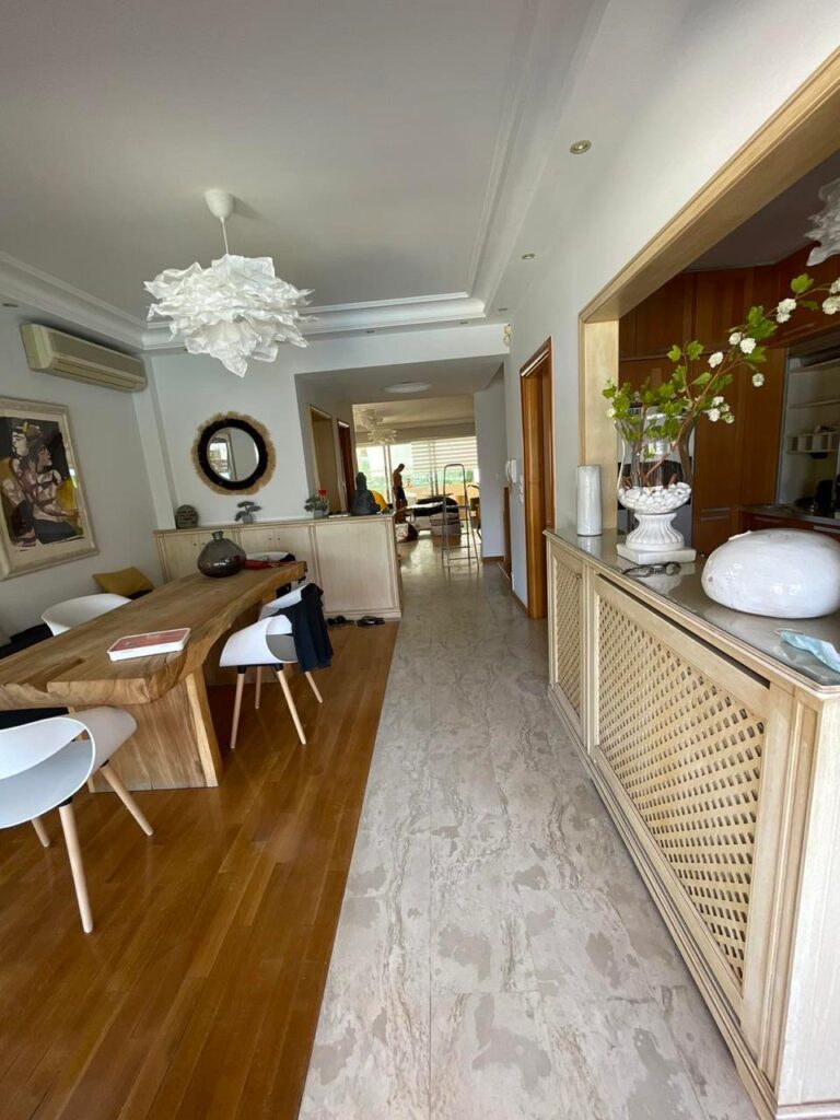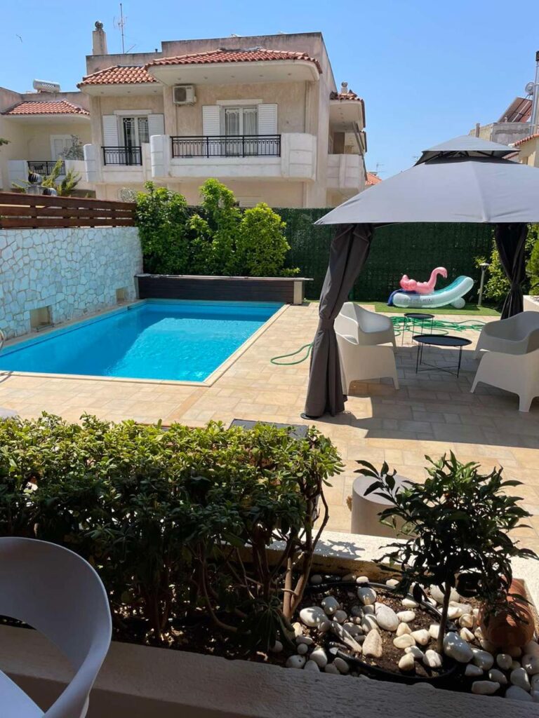 consisting of Ground floor 95 sq.m., 1st floor 95 sq.m., 2nd floor 36 sq.m. and basement 111 sq.m., with 4 bedrooms (2 master), 1 maid’s room, 3 bathrooms, 1 wc, 2 kitchens, 2 living-dining rooms, playroom, Veranda, independent heating, fireplace, security door, aluminum frames, double glazing, oak floors, storage room, outdoor swimming pool 25 m2, garden, BBQ, oven, 2 parking spaces, very bright, in excellent condition, with the possibility of charging an electric car.