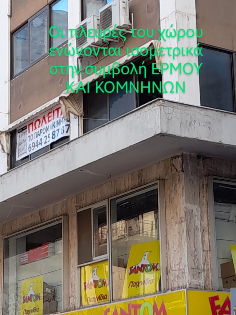 Πωλείται επενδυτικό ακίνητο στο κέντρο της Θεσσαλονίκης στο καλύτερο εμπορικό σημείο της πόλης, ο πρώτος όροφος της πολυκατοικίας πού βρίσκεται στη συμβολή των οδών Κομνηνού 23 Ερμού 20 με είσοδο από την Κομνηνών συνολικού εμβαδού 303 τετραγωνικών μέτρων μεικτά κα καθαρά 270 τετραγωνικά μέτρα ,επιπλέον ένα γραφείο που ευρίσκεται στην ίδια οικοδομή στο δεύτερο όροφο 32 τετραγωνικών μέτρων το οποίο βρίσκεται από την πλευρά της Κομνηνών από αριστερά προς τα δεξιά και συνορεύει με τον πρώτο όροφο.