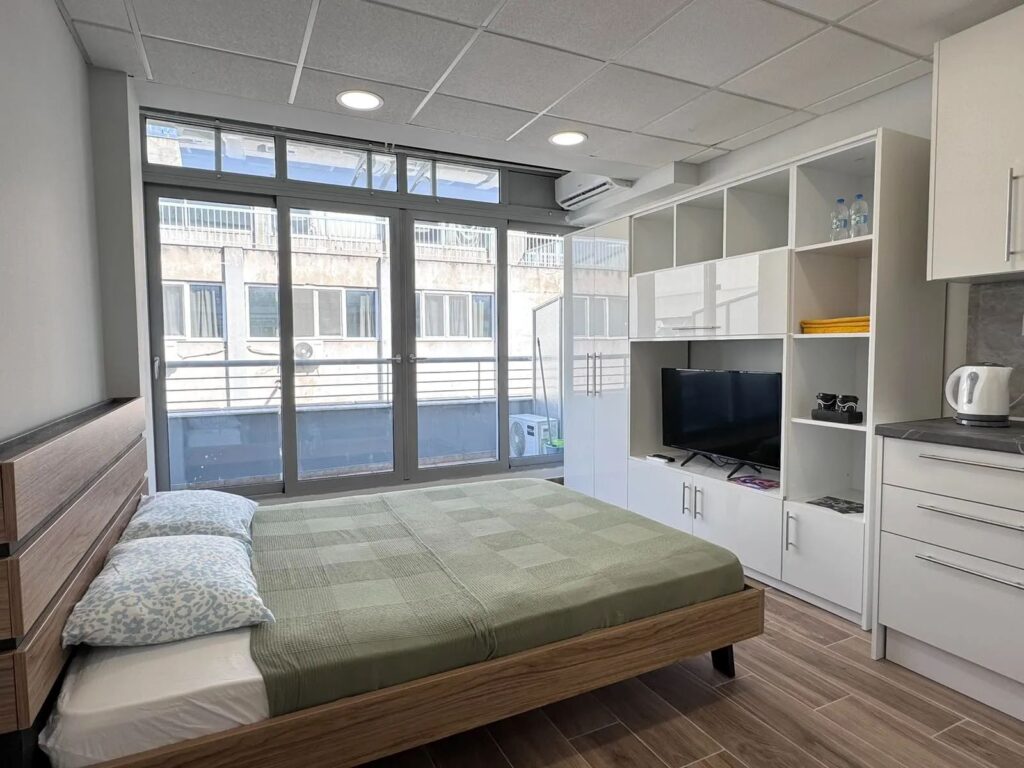 Αποτελείται από 1 ενιαίο χώρο με κουζίνα, μπάνιο και εξώστη με πρόσοψη εμπρόσθιο της οικοδομής με ευρύχωρο μπαλκόνι με θέα την θάλασα. Διαθέτει θωρακισμένη πόρτα ασφαλείας, συνθετικά κουφώματα ενεργειακής κλάσης με διπλούς υαλοπίνακες, δάπεδα με κεραμικά πλακίδια και Laminate, θερμοσίφωνα, ατομική θέρμανση/ψύξη με κλιματιστική μονάδα στην οροφή και εξτρά κλιματιστικό Inverter.