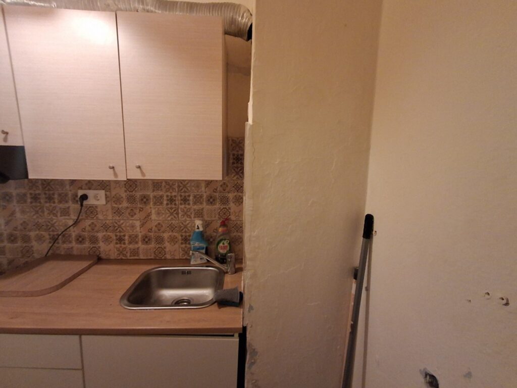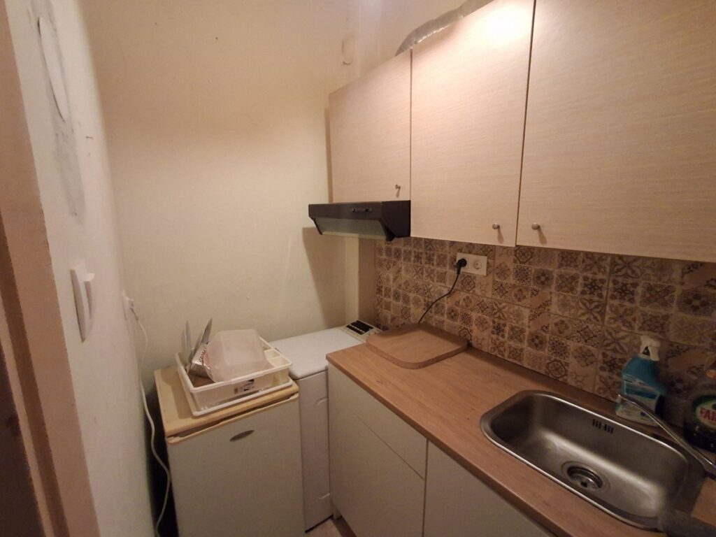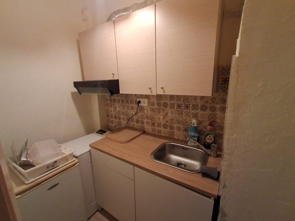 εχει κουζινα , εναν ενιαιο χωρο σαλονο – δωματιου και μπανιο με παραθυρο και παταρι ,