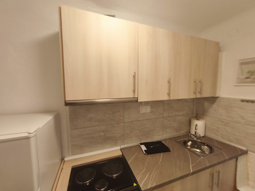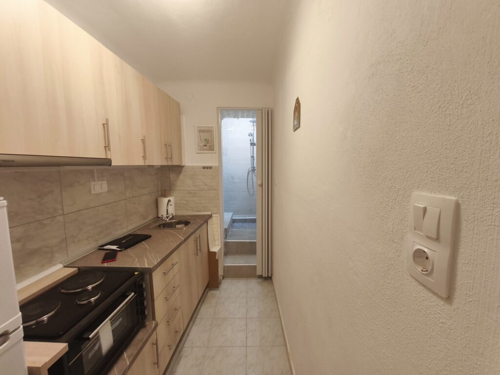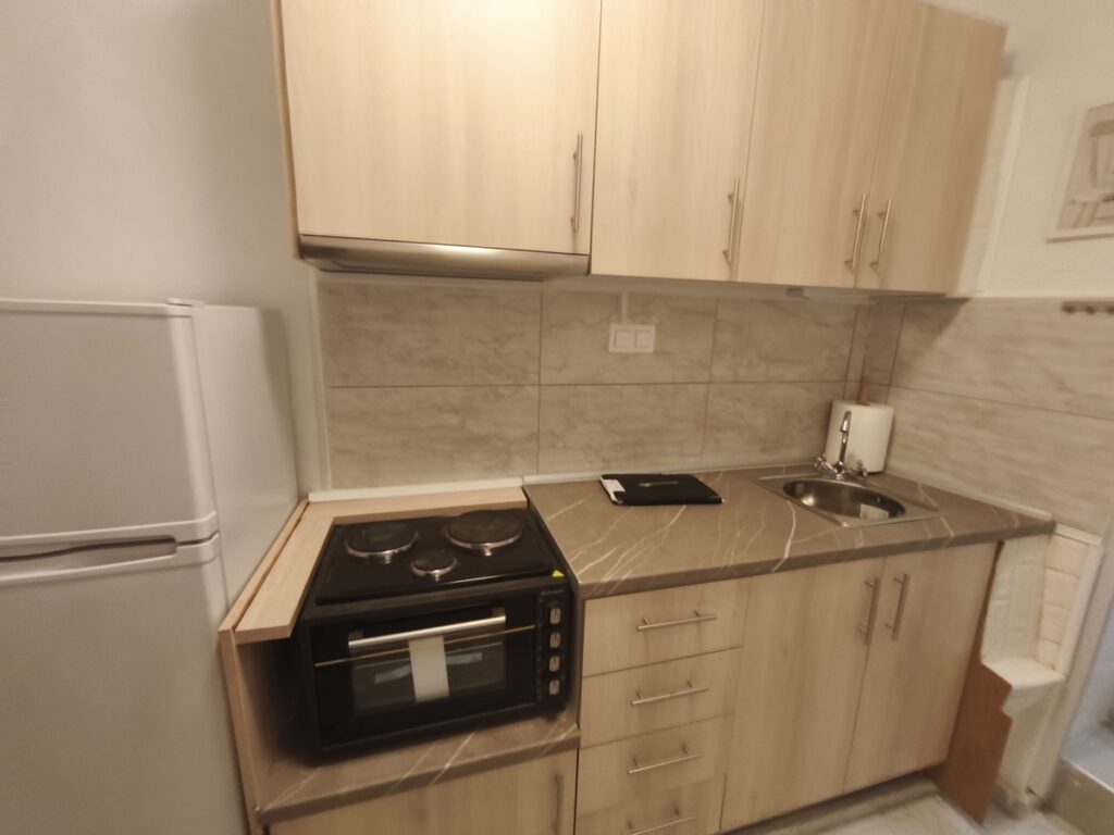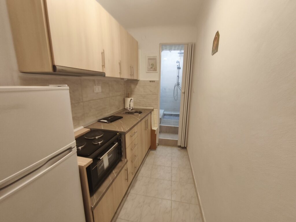 εχει ξεχωριστη κουζινα , δωματιο – σαλονι και μπανιο με παραθυρο ,