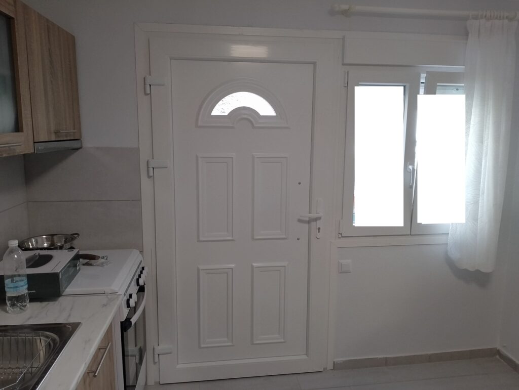 laminate , με κουφωματα pvc ανακλησης , διαθετει πορτα