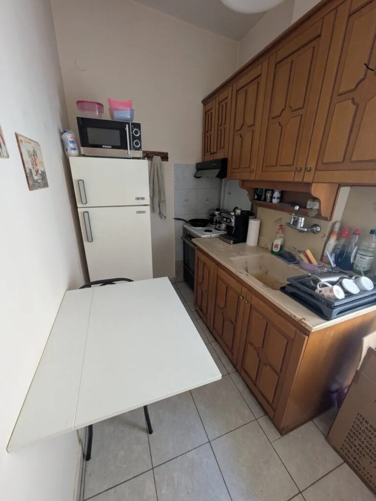 με ενα δωματιο , σαλονι , κουζινα , μπανιο με παραθυρο και παταρι