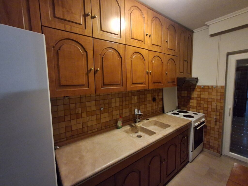 με δυο δωματια , σαλονι , κουζινα και μπανιο με παταρι ,
