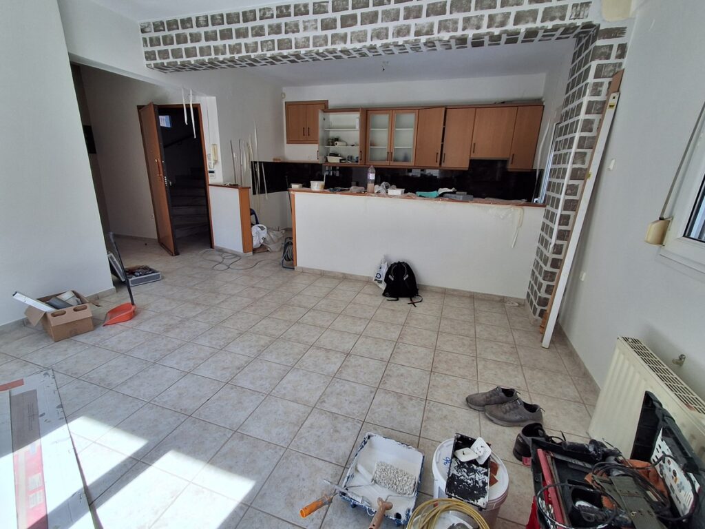 εχει ατομικο φυσικο αεριο , το δαπεδο ειναι πλακακι ,