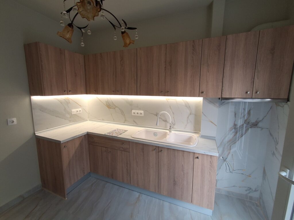 με δυο δωματια , σαλονι , κουζινα και μπανιο με παραθυρο ,
