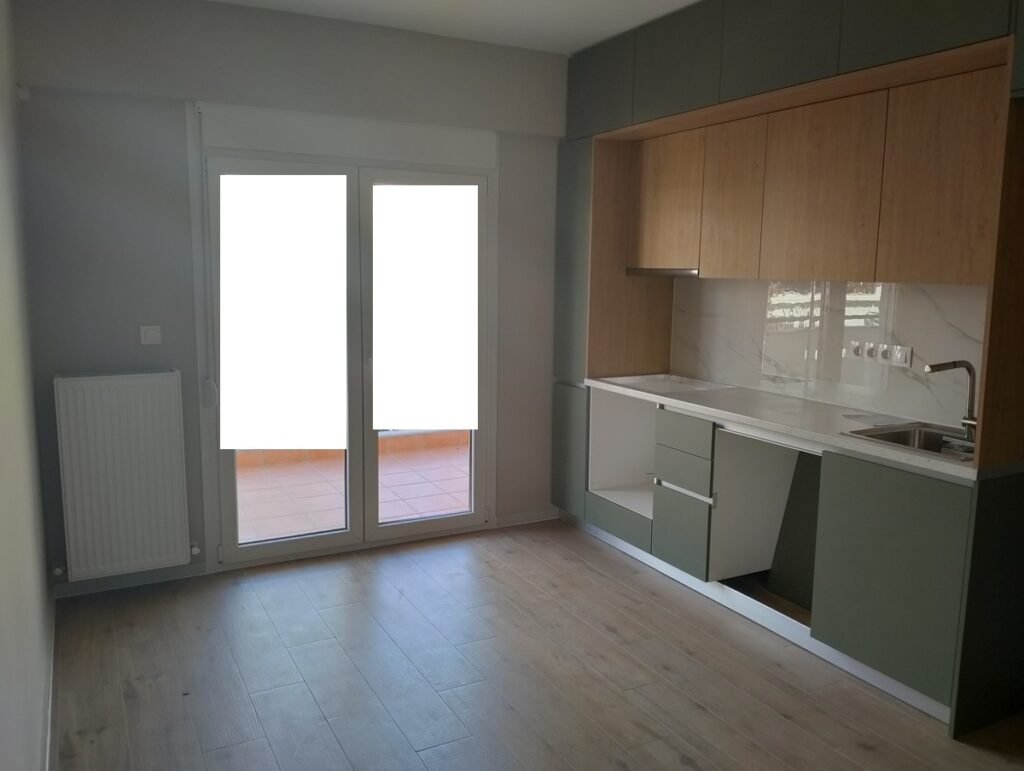 με ενα δωματιο , σαλονι , κουζινα και μπανιο με παραθυρο ,