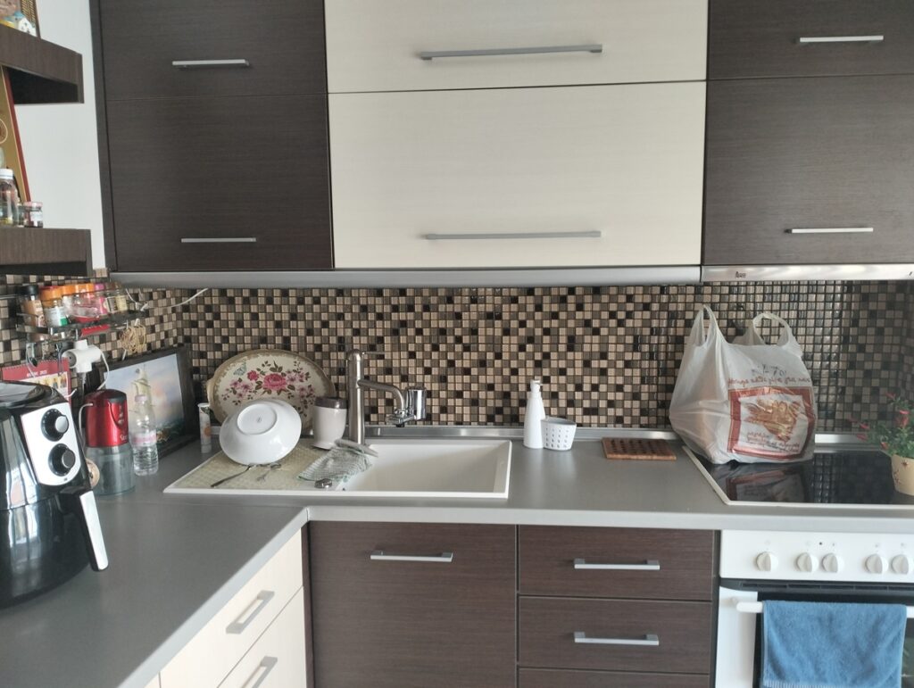 με δυο δωματια , σαλονι , κουζινα και μπανιο με παραθυρο ,