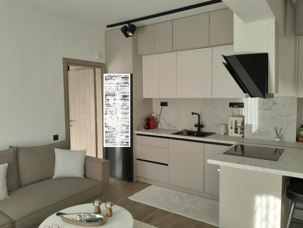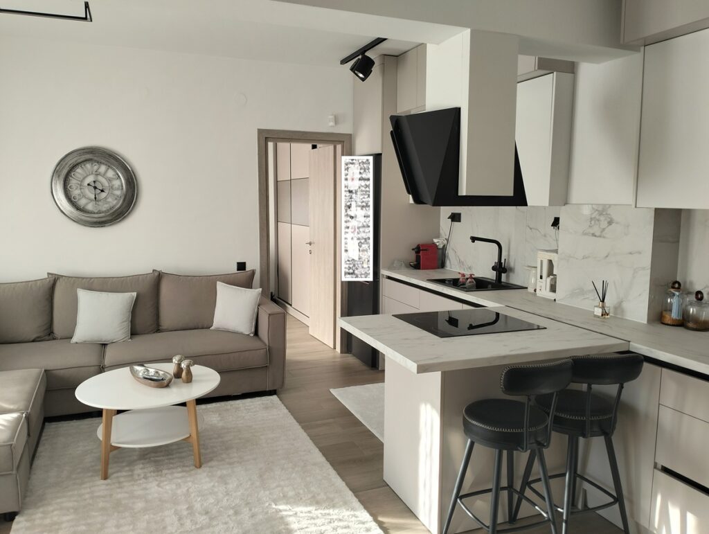 με δυο δωματια , σαλοκουζινα και μπανιο με παραθυρο ,