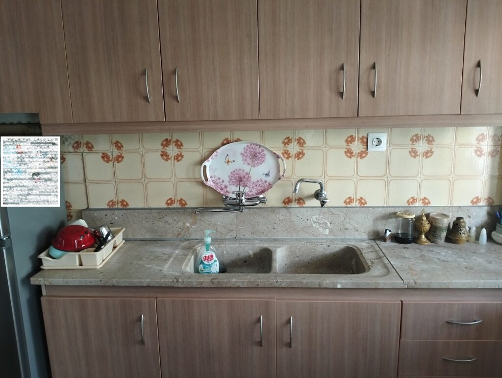 με τρια δωματια , σαλονι , κουζινα , μπανιο με παραθυρο ,