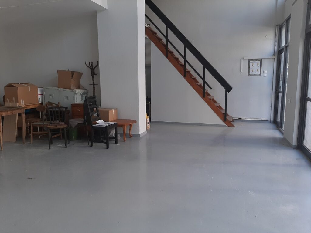 εχει προσοψη 10 μετρα και υψος 5 μετρα , με βιομηχανικο δαπεδο ,