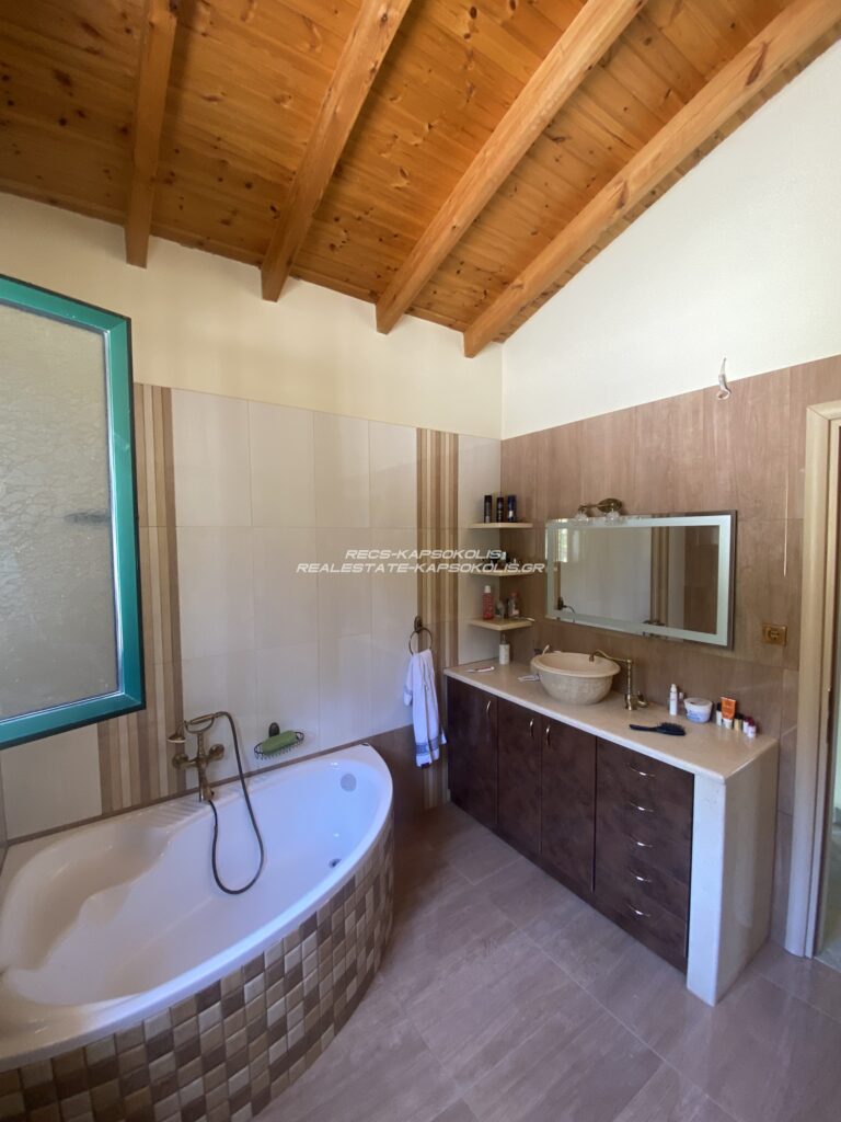 The plot covers approximately 8 stremmas and includes a 80 sq.m. house in excellent condition, constructed in 2012 and It is autonomously powered exclusively by photovoltaics and has a water supply system from tanks (it is not connected to the public water company EYDAP or the electricity provider DEI but it can be connected in case you need it).. This residence is fully equipped and features a beautiful terrace with stunning sea views. The interior spaces are bright and welcoming, boasting a living area with a fireplace and large windows that allow for ample natural light.