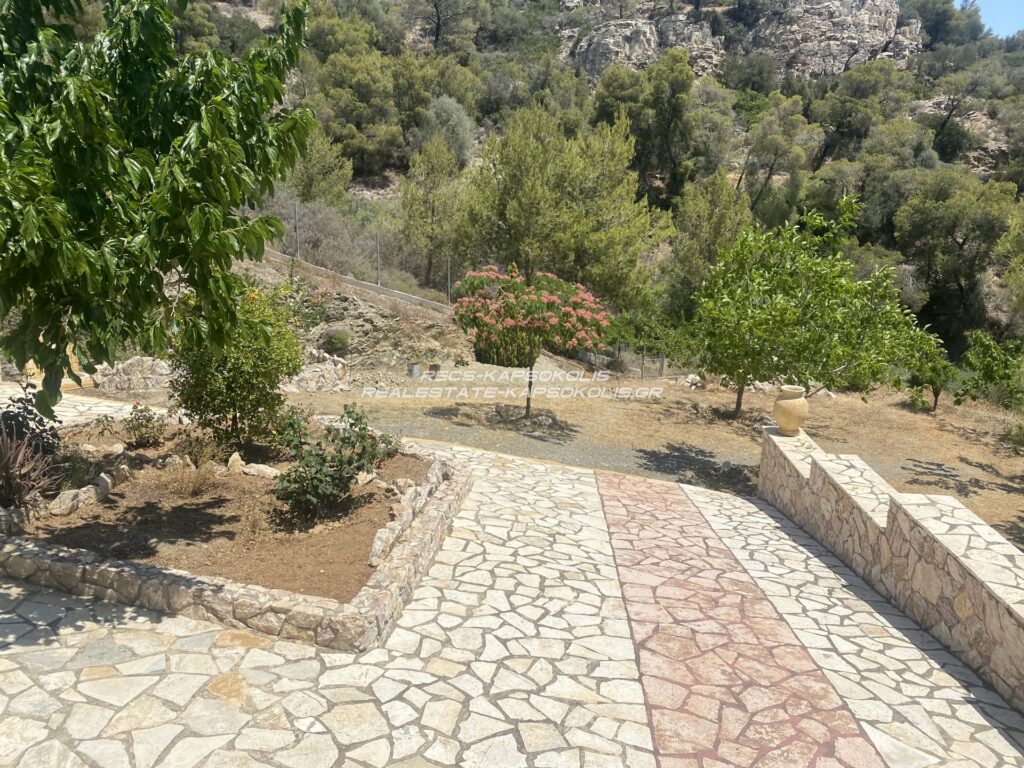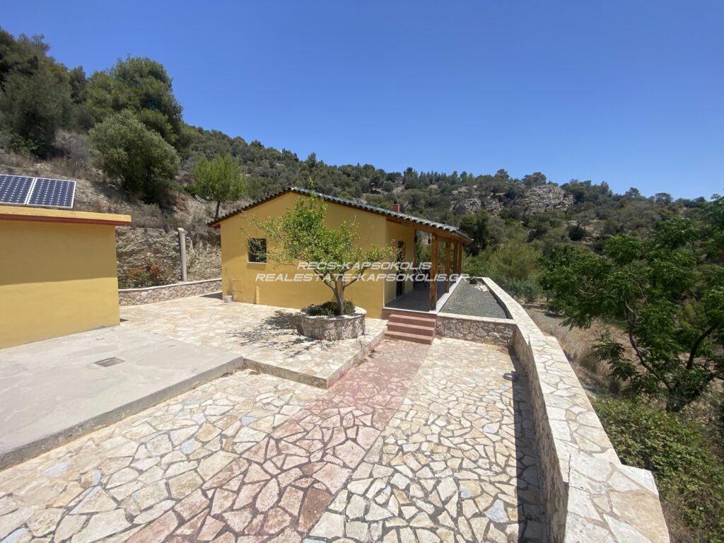 Το οικόπεδο έχει συνολικό εμβαδόν περίπου 8 στρέμματα και περιλαμβάνει μια κατοικία 80 τ.μ. σε άριστη κατάσταση, η οποία κατασκευάστηκε το 2012 η οποια εχει πληρη αυτονομια δηλαδη ρευματοδοτειτε αποκλειστικα και μονο απο φωτοβολταικα και εγκατασταση για παροχη νερου απο δεξαμενες (δεν ειναι δηλαδη συνδεδεμενο με την ΕΥΔΑΠ και την ΔΕΗ αλλα μπορει να γινει συνδεση αν το επιθυμειτε ). Η κατοικία αυτή είναι πλήρως εξοπλισμένη και διαθέτει μια όμορφη βεράντα με καταπληκτική θέα προς τη θάλασσα. Οι εσωτερικοί χώροι είναι φωτεινοί και φιλόξενοι, με χώρο καθιστικού που διαθέτει τζάκι και μεγάλα παράθυρα που επιτρέπουν την είσοδο φυσικού φωτισμού.