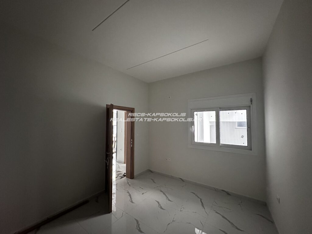 Οι εσωτερικοί χώροι είναι φιλόξενοι και ευρύχωροι, καθώς το γραφείο διαθέτει διπλά τζάμια, εξασφαλίζοντας ήχο και θερμομόνωση. Οι πλακόστρωτοι δάπεδοι προσθέτουν μία σύγχρονη αίσθηση, ενώ οι αλουμινένιοι πλαίσιες στα παράθυρα ενισχύουν τη μοντέρνα σχεδίαση του χώρου. Το γραφείο διαθέτει ένα πλήρως εξοπλισμένο μπάνιο και μία λειτουργική κουζίνα, διευκολύνοντας τις καθημερινές ανάγκες των εργαζομένων.