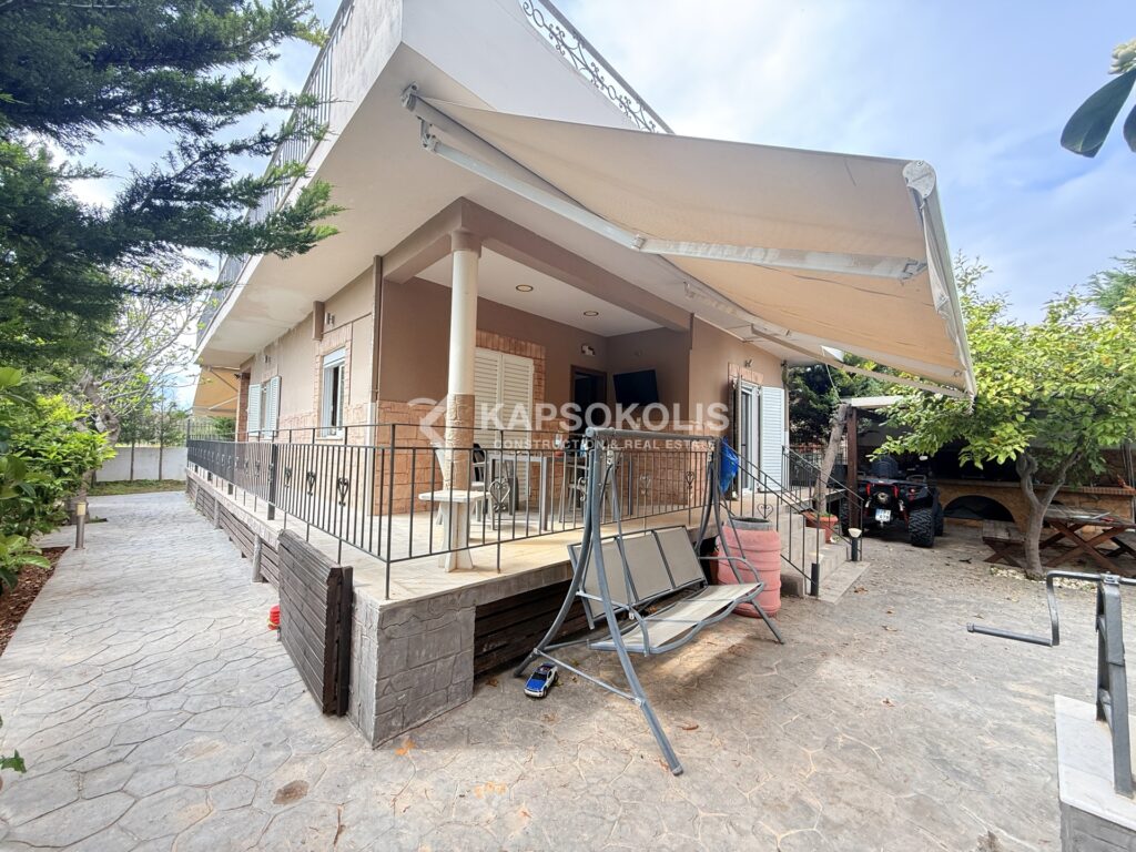 Η μεγάλη περιμετρική βεράντα αγκαλιάζει το ακίνητο, προσφέροντας επιπλέον χώρο για χαλάρωση με θέα στον κήπο. Η κατοικία διαθέτει κλιματισμό (A/C) σε όλους τους χώρους και πωλείται πλήρως επιπλωμένη, έτοιμη για άμεση κατοίκηση.