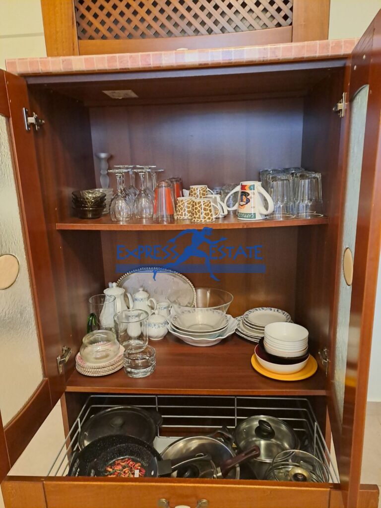 Είναι πλήρως επιπλωμένο και διαθέτει ηλεκτρικές συσκευές, καθώς και αυτόνομη θέρμανση με πετρέλαιο, κλιματισμό, λέβητα και καλοριφέρ.