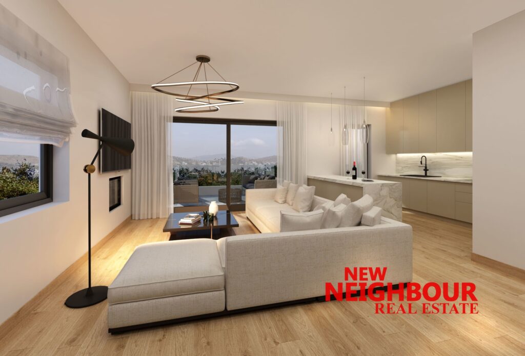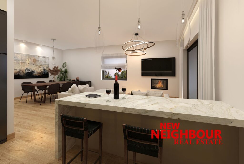 Πωλείται υπό κατασκευή ισόγειο διαμέρισμα 104τ.μ στα Άνω Μελίσσια, παραδοτέο Φθινόπωρο του ‘26. Διαθέτει ευρύχωρο καθιστικό με ενιαία κουζίνα, 2υ/δ και 2 λουτρά. Έχει ενδοδαπέδια θέρμανση με αντλία θερμότητας, κλιματισμό, ηλ. θερμοσίφωνα, ενεργειακά κουφώματα με θερμοδιακοπή, συναγερμό, ενεργειακό τζάκι ενώ ολόκληρο το κτίριο περιβάλλεται από θερμοπρόσοψη και είναι ενεργειακής κλάσης Α +. Επίσης διαθέτει μια θέση πάρκινγκ στην πυλωτή και μια αποθήκη στο υπόγειο. Είναι ένα σπίτι με υποδειγματική διαρρύθμιση, πολύ υψηλής ποιότητας κατασκευής, στο οποίο ανήκει και η αποκλειστική χρήση ενός όμορφου κήπου. Βρίσκεται σε μια πολύ ήσυχη γειτονιά κοντά στην αγορά τόσο των Μελισσίων όσο και της Νέας Πεντέλης. Τιμή 480.000 ευρώ. NEW NEIGHBOUR REAL ESTATE AGENCY, Τηλέφωνο Επικοινωνίας: 2167005657, email: info@newneighbour.gr, website: www.newneighbour.gr