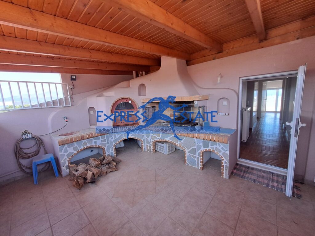 Η μεζονέτα εκτείνεται σε δύο επίπεδα, προσφέροντας 4 υπνοδωμάτια, εκ των οποίων το 1 είναι master, μαζί με 1 επιπλέον μπάνιο και 1 WC. Στο 1ο επίπεδο με την είσοδο μας από το ασανσέρ μπαίνουμε μέσα στο φωτεινό και ευρύχωρο σαλόνι όπου συναντάμε το μοναδικό σκαλιστό μαρμάρινο τζάκι που στολίζει και χαρίζει θαλπωρή και ζεστασιά τους μήνες του χειμώνα, τον ειδικά διαμορφωμένο χώρο της τραπεζαρίας και την open plan κουζίνα με πρόσβαση στο μεγάλο μπαλκόνι που απολαμβάνει πανοραμική θέα στον Ευβοϊκό κόλπο. Η κουζίνα είναι πλήρως εξοπλισμένη με σύγχρονες ηλεκτρικές συσκευές και προσφέρει αρκετό χώρο για οικογενειακά γεύματα.