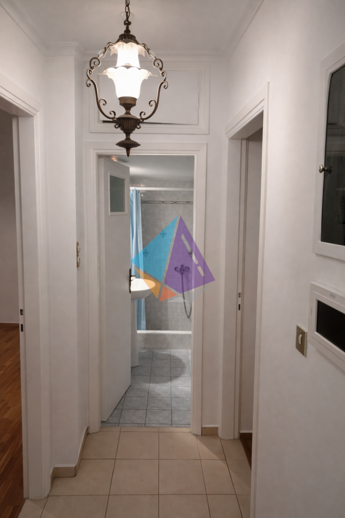 Είναι σε καλή κατάσταση και διαθέτει μαρμάρινα δάπεδα, ξύλινα κουφώματα, κλιματισμό καθώς και boiler. Το ενεργειακό πιστοποιητικό είναι κατηγορίας Ζ. Πρόκειται για μια αξιόλογη επιλογή κατοικίας σε κομβικό σημείο, με εύκολη πρόσβαση σε συγκοινωνίες και καθημερινές υποδομές.