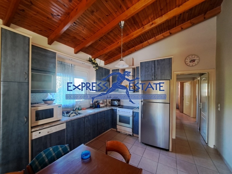 Αποτελείται από 3 υπνοδωμάτια, ενιαία σαλοτραπεζαρία με κουζίνα , 2 ευρύχωρα φωτεινά μπάνια και αποθήκη 4 τ. μ. Είναι κατασκευασμένη το 2008 με ενεργειακή κλάση Β+ και διαθέτει θέρμανση ατομική – πετρέλαιο, θέα σε ανοιχτό ορίζοντα, κουφώματα αλουμινίου, πατώματα από πλακάκι, πόρτα ασφαλείας, εντοιχιζόμενες ντουλάπες, πάρκινγκ, αποθήκη , κήπο, τζάκι, A/C, ηλεκτρικές συσκευές, τέντες, διπλά τζάμια, ηλιακό θερμοσίφωνα, BBQ, δορυφορική κεραία, ανοιχτωσιά απόσταση από θάλασσα 1000 μέτρα.
