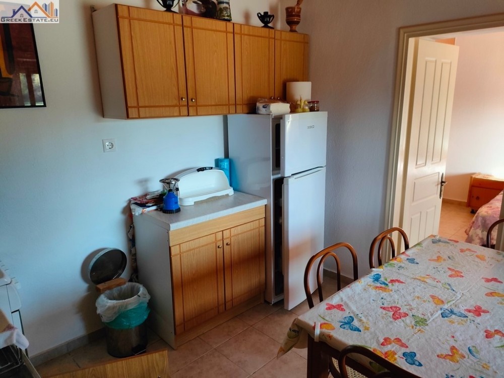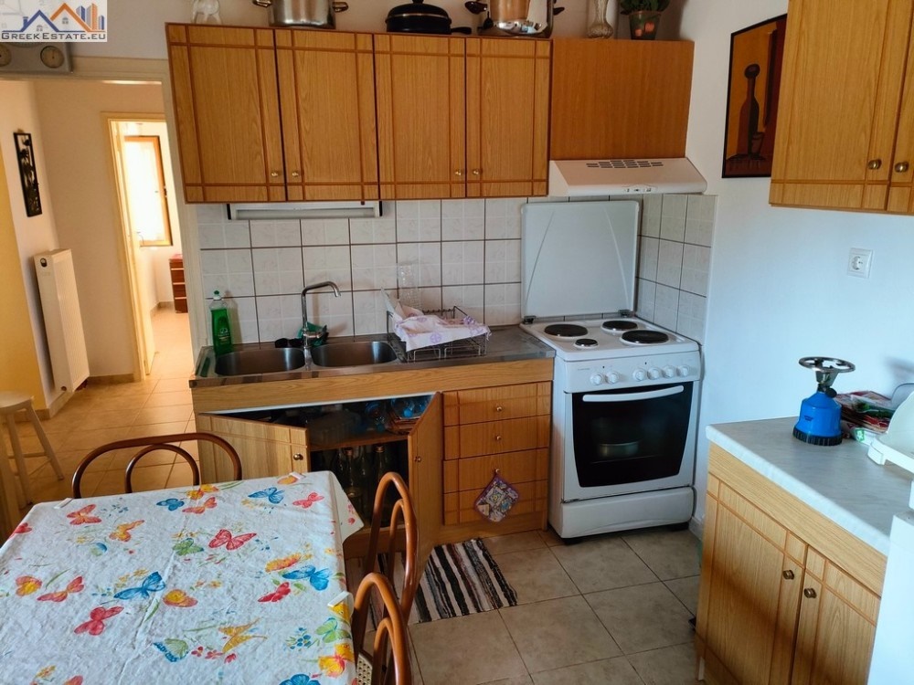 Το σπίτι αναπτύσσεται σε ισόγειο επίπεδο και αποτελείται από δύο άνετα υπνοδωμάτια, ένα φωτεινό σαλόνι που λειτουργεί ως χώρος υποδοχής, μια λειτουργική κουζίνα και ένα πλήρες μπάνιο. Η κατασκευή του 1955 έχει ανακαινιστεί το 2008, διαθέτοντας πλακάκια, ενεργειακά αλουμινένια κουφώματα με διπλά τζάμια, πόρτα ασφαλείας και σίτες. Η ατομική θέρμανση πετρελαίου προσφέρει αυτονομία και οικονομία, ενώ η ενεργειακή κλάση Ε το καθιστούν αποδοτικό. Το ακίνητο είναι βαμμένο, επιπλωμένο με ηλεκτρικές συσκευές, προσόψεως, διαμπερές, ευάερο και ευήλιο, με βεράντα, αποθήκη και βόθρο. Νυχτερικό ρεύμα, χωρίς κοινόχρηστα έξοδα και επιτρέπονται κατοικίδια!