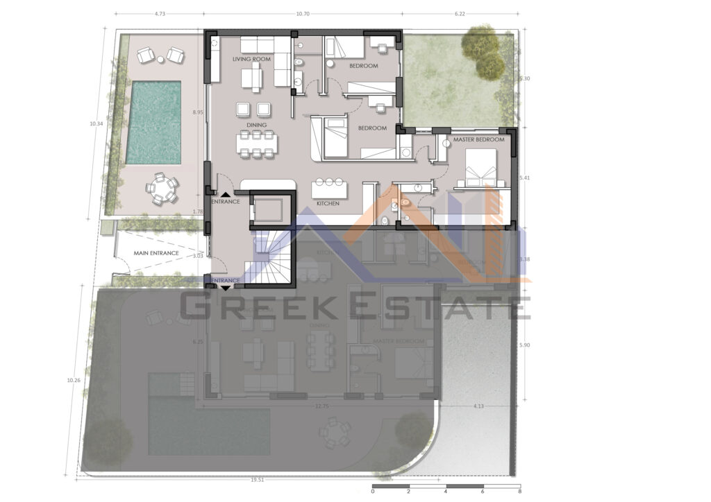 • Δύο ισόγεια διαμερίσματα με ιδιωτική πισίνα και κήπο