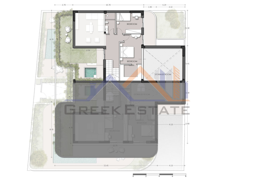 Η σοφίτα εκτείνεται σε 64,4 τ.μ. και φιλοξενεί δύο ευρύχωρα υπνοδωμάτια, εξασφαλίζοντας ένα ιδανικό περιβάλλον για οικογένειες ή φιλοξενούμενους. Το δεύτερο μπάνιο προσφέρει επιπλέον άνεση, ενώ το walking closet καθιστά τη διαχείριση του χώρου πιο εύκολη. Για στιγμές χαλάρωσης, η σοφίτα διαθέτει εξωτερικό υδρομασάζ και μια βιοκλιματική πέργκολα που παρέχει σκιά και προστασία από τον ήλιο.