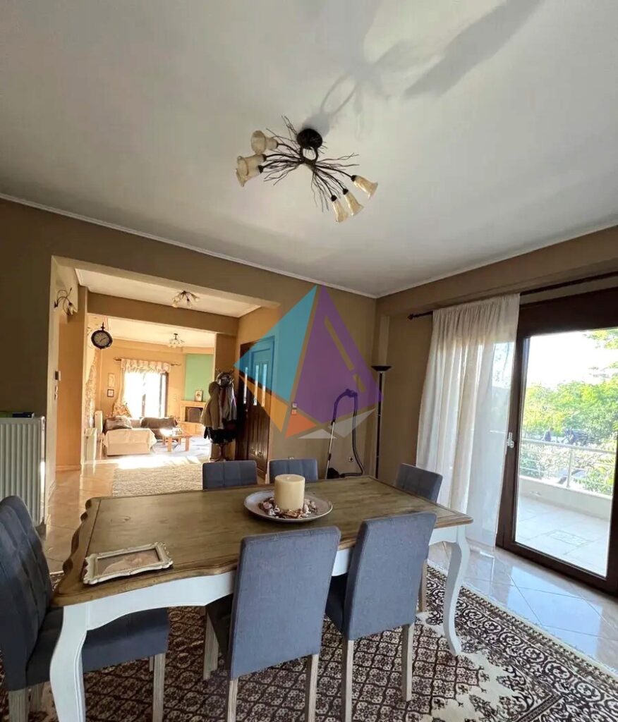 Η κατοικία αναπτύσσεται σε τρία επίπεδα και αποτελείται από δύο ανεξάρτητους χώρους. Το υπόγειο φιλοξενεί ένα αυτόνομο διαμέρισμα 83 τ.μ., με ζεστό καθιστικό που διαθέτει τζάκι, ιδανικό για οικογενειακές στιγμές ή φιλοξενία επισκεπτών. Στους άνω ορόφους αναπτύσσεται η κύρια μεζονέτα 154 τ.μ., η οποία προσφέρει υψηλής ποιότητας διαβίωση. Περιλαμβάνει μία σύγχρονη κουζίνα, ευρύχωρο καθιστικό επίσης με τζάκι, τραπεζαρία, τρία υπνοδωμάτια (εκ των οποίων το ένα διαμορφωμένο ως playroom), δύο μπάνια και ένα WC.