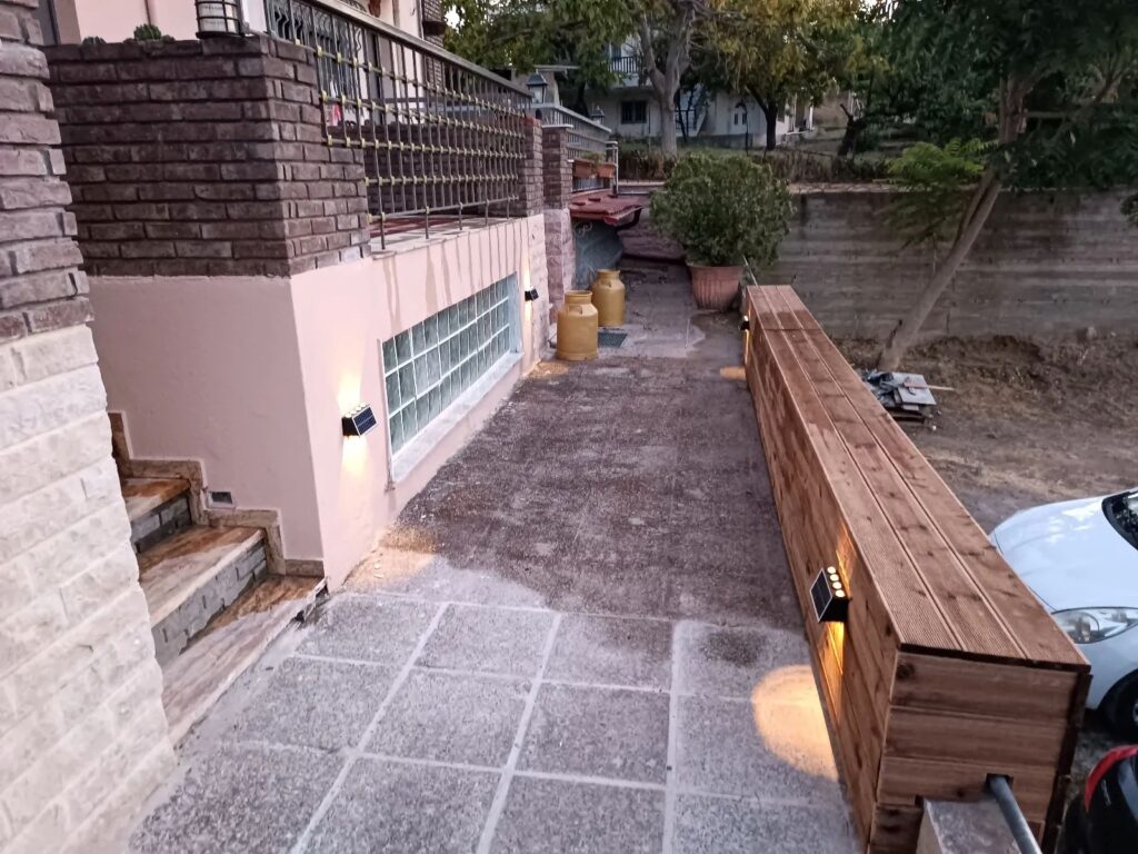 Ο κάτω χώρος κουζίνα – σαλόνι – καθιστικό – τζάκι – κήπος είναι υπενδεδυμένος με αληθινή πέτρα.