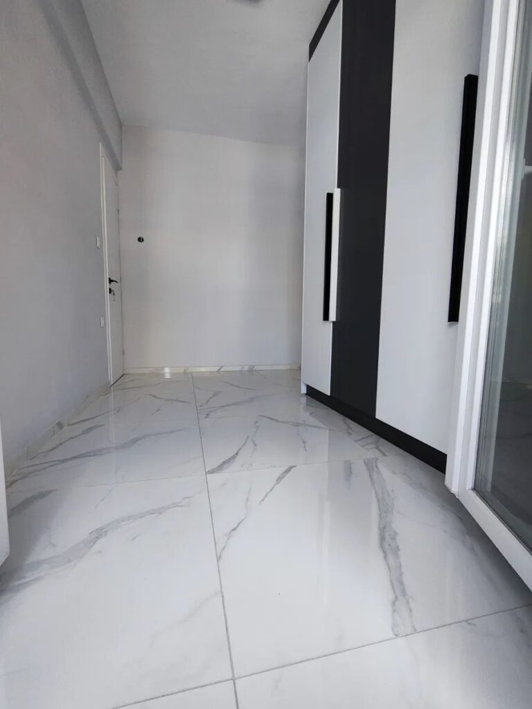 Αποξήλωση παλαιών δαπέδων, τοποθέτηση νέου κονιάματος (γκρο μπετόν) και έπειτα τοποθέτηση νέων πλακιδίων, ισπανικής προέλευσης, διαστάσεων 80 επί 80.