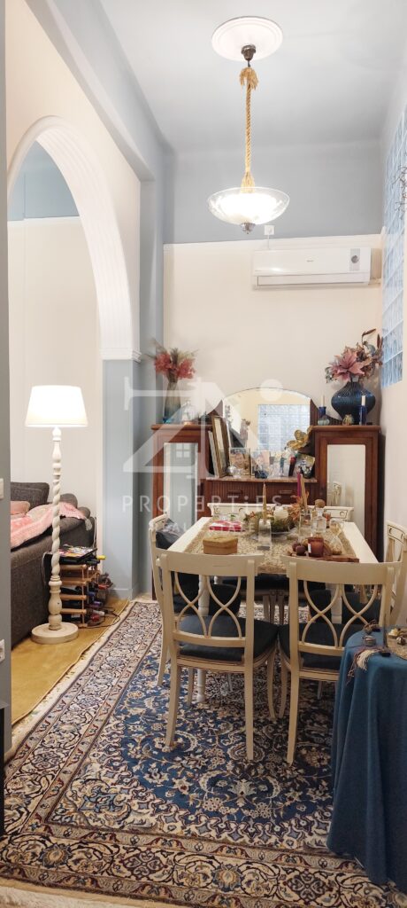 Η κατοικία εντυπωσιάζει από την πρώτη στιγμή με τα ψηλοτάβανα άνω των 4 μέτρων, τις καμάρες και τις αναλογίες των χώρων, στοιχεία που δημιουργούν αίσθηση αρχοντιάς και πραγματικής άνεσης. Δεν πρόκειται για απλώς «ένα ακόμη διαμέρισμα», αλλά για χώρο με ταυτότητα.