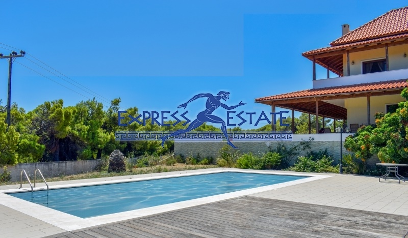 Αποτελείται από 8 υπνοδωμάτια, 4 σαλόνια, 5 κουζίνες, 5 μπάνια και WC. Είναι κατασκευασμένη το 2007 με ενεργειακή κλάση Α και διαθέτει θέρμανση ατομική – πετρέλαιο. Έχει θέα σε θάλασσα, κουφώματα αλουμινίου, πόρτα ασφαλείας, εντοιχιζόμενες ντουλάπες, πρόσβαση ΑΜΕΑ, πάρκινγκ, αποθήκη , κήπο, τζάκι, πισίνα, A/C, συναγερμό, ηλεκτρικές συσκευές, τέντες, σίτες, διπλά τζάμια, ηλιακό θερμοσίφωνα, BBQ, σοφίτα, playroom, δορυφορική κεραία, νυχτερινό ρεύμα, ανοιχτωσιά, εσωτερική σκάλα, μπαλκόνια 200 τ.μ. απόσταση από πόλη 300 μέτρα απόσταση από αεροδρόμιο 15000 μέτρα.