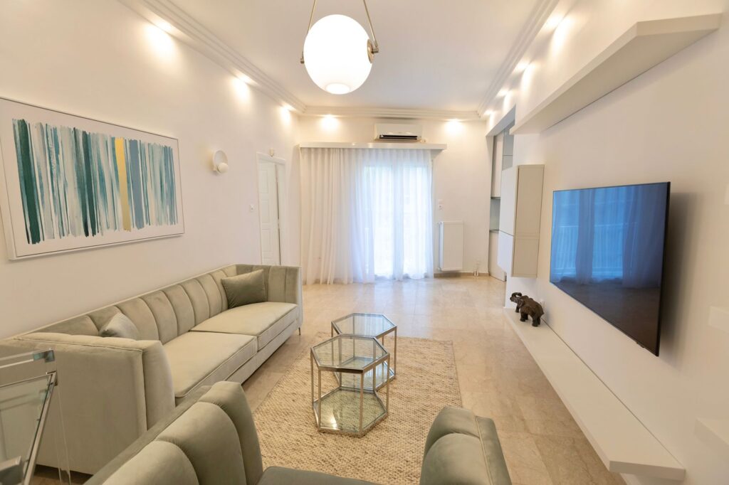 ΠΑΛΑΙΟ ΦΑΛΗΡΟ-Φλοίσβος, επιπλωμένο πολυτελές Διαμέρισμα 125 τ.μ., προς πώληση, ριζικά ανακαινισμένο το 2023, 1ος όροφος, 3 Υ/Δ, σαλόνι, 2 κουζίνες με εντοιχισμένες ηλεκτρικές συσκευές, 2 μπάνια, βεράντες, αυτόνομη θέρμανση-Φυσικό Αέριο, κλιματισμός 4 A/C, κουφώματα αλουμινίου, διπλά τζάμια, πόρτα ασφαλείας, ευχάριστο και ασφαλές περιβάλλον γειτονιάς, θέα θάλασσα, δίπλα στην Αγορά του Π. Φαλήρου και σε όλες τις συγκοινωνίες, στάσεις Τραμ-Λεωφορείων, προς Αθήνα- Πειραιά-Γλυφάδα.