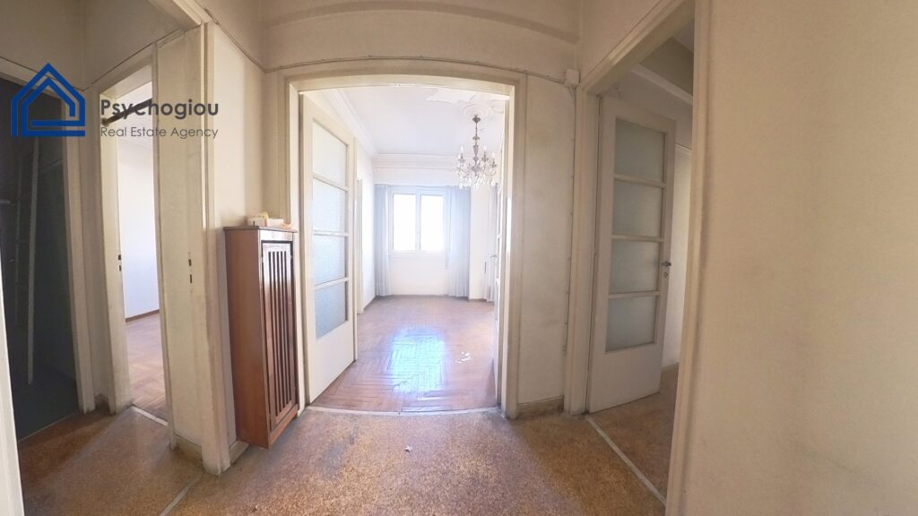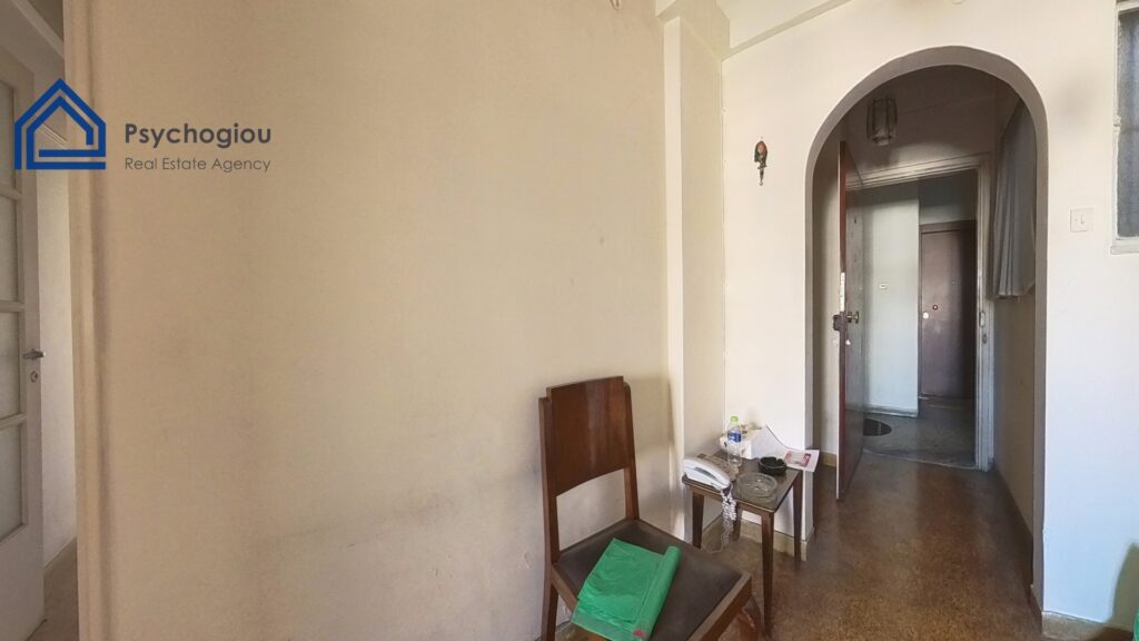 Βρίσκεται στον 5ο όροφο μιας κλασικής πολυκατοικίας χτισμένης το 1964, έχει προσανατολισμό βόρειοδυτικό και προσφέρει μια εξαιρετική θέα στο αστικό τοπίο της Αθήνας. Οι ξύλινες και μωσαϊκές δάπεδες δημιουργούν μια ζεστή ατμόσφαιρα, και οι μονές τζαμαρίες στα ξύλινα παράθυρα αφήνουν το φυσικό φως να διαχέεται στο χώρο.