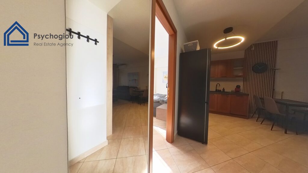Αποτελείται από ένα ευρύχωρο καθιστικό που συνδυάζεται αρμονικά με την ανοικτή κουζίνα, δημιουργώντας έναν πολυλειτουργικό χώρο ιδανικό για οικογενειακές συναντήσεις ή χαλάρωση. Η κουζίνα είναι πλήρως εξοπλισμένη με όλες τις σύγχρονες συσκευές, καθιστώντας την κατάλληλη για την προετοιμασία γευμάτων. Το διαμέρισμα διαθέτει επίσης έναν άνετο υπνοδωμάτιο και ένα μπάνιο, εφοδιασμένα με όλα τα απαραίτητα.