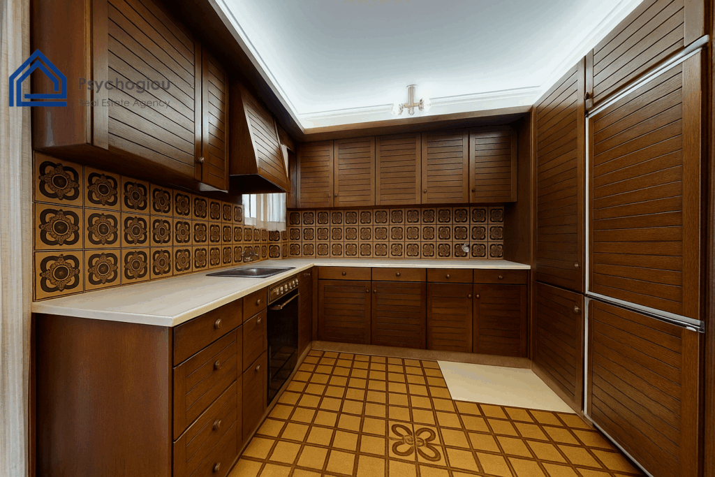 Διαρρύθμιση και Χαρακτηριστικά: Το διαμέρισμα διαθέτει τρία ευρύχωρα υπνοδωμάτια, ένα μπάνιο πλήρως εξοπλισμένο και ένα WC. Η κουζίνα είναι σχεδιασμένη με παραδοσιακά στοιχεία και μοντέρνες πινελιές, προσφέροντας άνετο χώρο για οικογενειακά γεύματα, ενώ ο ευρύχωρος καθιστικός χώρος είναι ιδανικός για χαλάρωση και ψυχαγωγία. Τα ποιοτικά υλικά στα πατώματα και τα μονά τζάμια ενισχύουν την αισθητική και την άνεση του χώρου.