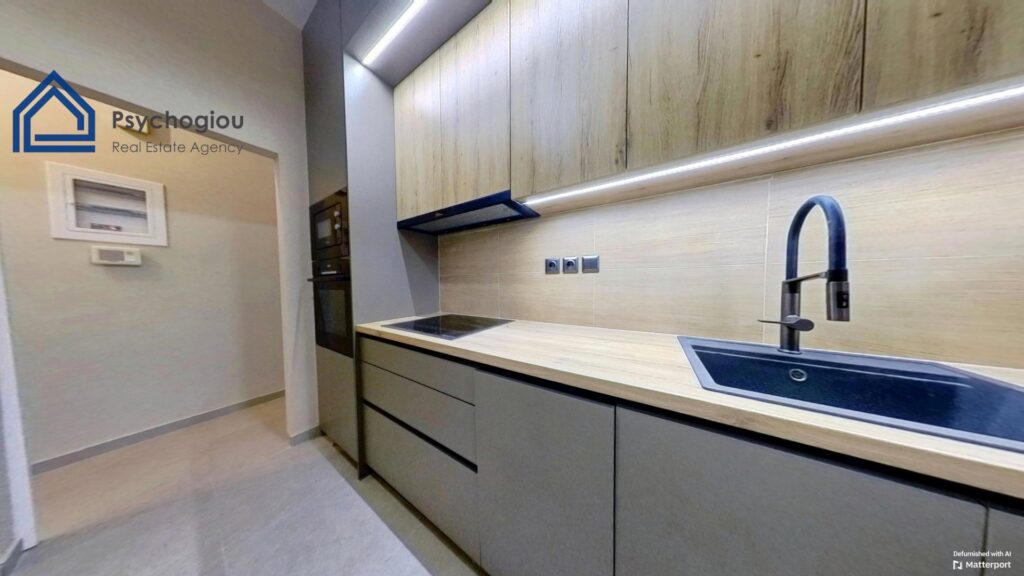Η κουζίνα έχει σχεδιαστεί με γνώμονα τη λειτουργικότητα και την αισθητική, περιλαμβάνοντας όλες τις απαραίτητες ηλεκτρικές συσκευές. Είναι άνετη και σύγχρονη, ιδανική για τους λάτρεις της μαγειρικής.