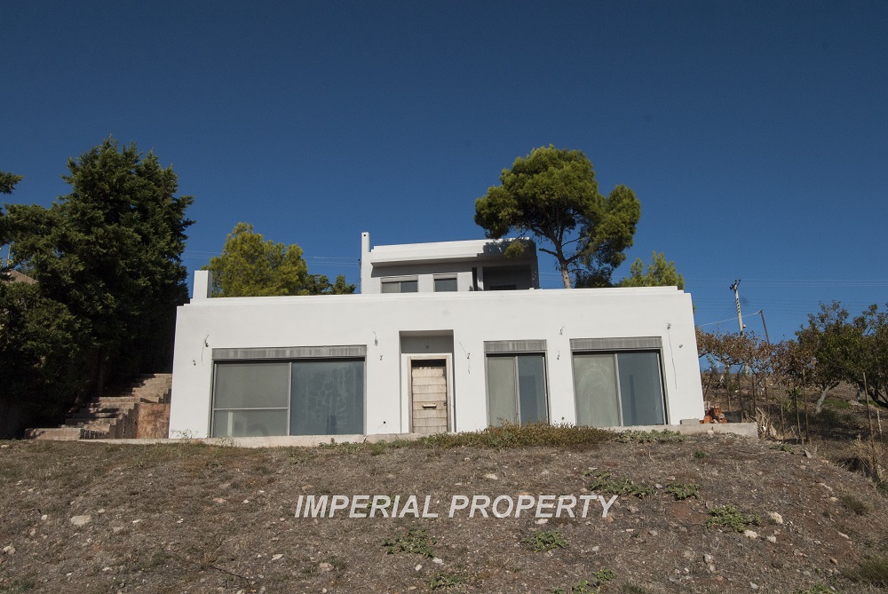 Εξαιρετική νεόδμητη διαμπερές μονοκατοικία στο Λαγονήσι – Γαλάζια ακτή στον Λόφο Ξελαφτάκη 400 τ.μ.. Αμφιθεατρική με φανταστική θέα θάλασσα και την γύρω περιοχή σε οικόπεδο 2.376 τ.μ. με δυο ξεχωριστές εισόδους εκ διαμέτρου αντίθετες. Στο οικόπεδο συνυπάρχουν αρμονικά δυο ανεξάρτητες κατοικίες σε διαφορετικά επίπεδα. Η μεγαλύτερη κύρια κατοικία – μεζονέτα είναι 300 τ.μ. με πισίνα 5X12 και αποτελείται από το ισόγειο όπου υπάρχει ένα ευρύχωρο και ευάερο σαλόνι, εξοπλισμένο με ενεργειακά αποδοτικό τζάκι, άνετος χώρος τραπεζαρίας σε διαφορετικό επίπεδο, και ένα πολύ άνετο γραφείο μια μεγάλη κουζίνα με τραπεζαρία, μπάνιο, ξενώνας με ιδιωτικό μπάνιο και αποθήκη/πλυσταριό ολοκληρώνουν τον όροφο. Το ισόγειο ανοίγει απευθείας στον κήπο και την πισίνα. Στον πρώτο όροφο υπάρχει το σαλόνι, δύο master υπνοδωμάτια και ένα τρίτο μικρότερο. Η κύρια κρεβατοκάμαρα έχει θέα στην θάλασσα και περιλαμβάνει ένα διπλανό δωμάτιο-ντουλάπα και ιδιωτικό μπάνιο. Το δεύτερο master και το τρίτο υπνοδωμάτιο, και τα δύο διαθέτουν δικό τους μπάνιο. Η δεύτερη κατοικία βρίσκεται σε σημείο που δεν εμποδίζει την θέα της μεγαλύτερης και έχει και αυτή εξίσου φανταστική θέα θάλασσα. Βρίσκεται ακριβώς κάτω από την πισίνα, η νότια πλευρά της καλύπτεται από γυάλινες πόρτες, Εδώ υπάρχει ένα ευάερο σαλόνι με ενιαία κουζίνα και τζάκι, καθώς και δύο υπνοδωμάτια με την ίδια εκπληκτική θέα θάλασσα, και δύο μπάνια. Η δεύτερη κατοικία – εκτός από το δικό της χώρο στάθμευσης – έχει τη δική της ξεχωριστή είσοδο που ανοίγει απευθείας στον ιδιωτικό δρόμο, για να διασφαλίζεται η ιδιωτικότητα του ιδιοκτήτη.